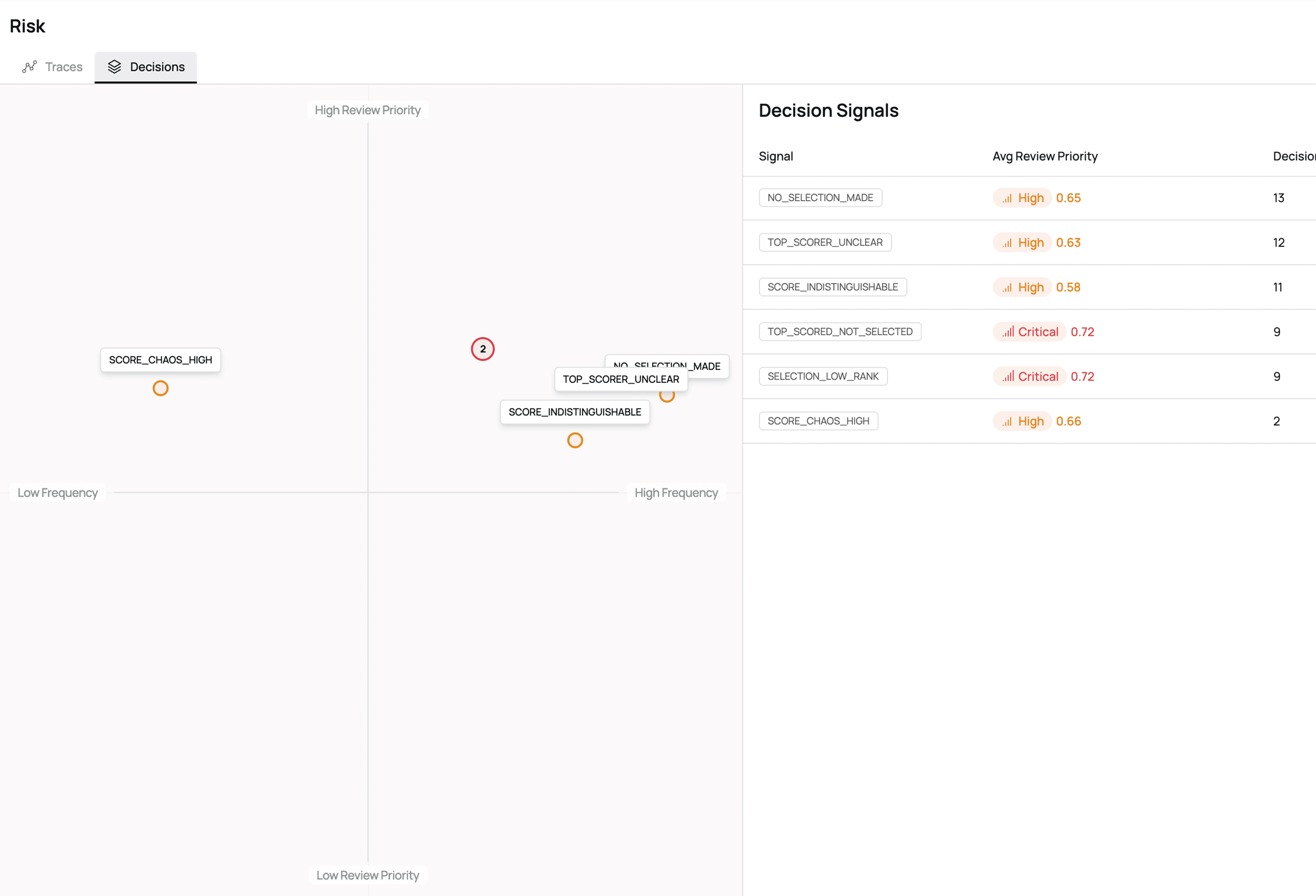 Out of the countless decisions made by AI systems, we automatically surface only those likely to cause problems. Teams no longer need to dig through endless logs and can focus on the decisions that truly matter.